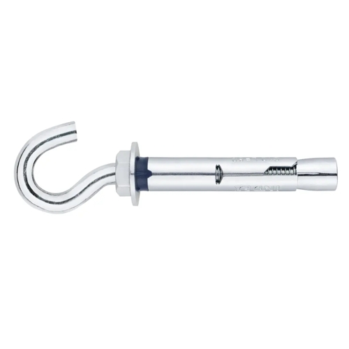Anclaje tipo camisa con gancho para cargas medias en materiales macizos. Incorpora antigiros para evitar que el anclaje rote en el apriete. Anclaje de expansión mecánica e instalación por par controlado. Fabricado en acero con recubrimiento zincado.