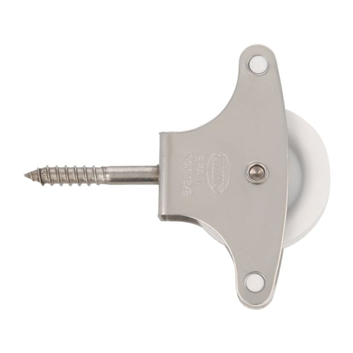 Polea de acero inoxidable 18/8 con roldana de plástico de Ø 39 mm. Con tirafondo de sujeción y guías. Para tendederos de ropa.